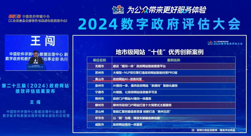 黃山市“政府網(wǎng)站AI+政務問答”入圍地市級政府網(wǎng)站“十佳”優(yōu)秀創(chuàng)新案例。