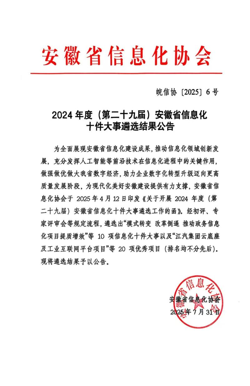 7月31日,安徽省信息化協(xié)會(huì)正式公布 2024 年度(第二十九屆)安徽省信息化十件大事遴選結(jié)果。由龍訊提供技術(shù)支持的黃山市基于大模型的多專家架構(gòu) “AI + 政務(wù)” 項(xiàng)目,歷經(jīng)多輪嚴(yán)格專家評審,在全省眾多申報(bào)項(xiàng)目中脫穎而出,成功入選2024年度(第二十九屆)安徽省信息化十件大事。這一成果不僅是對黃山市信息化建設(shè)的肯定,更彰顯了人工智能技術(shù)在政務(wù)服務(wù)領(lǐng)域的深度應(yīng)用價(jià)值。