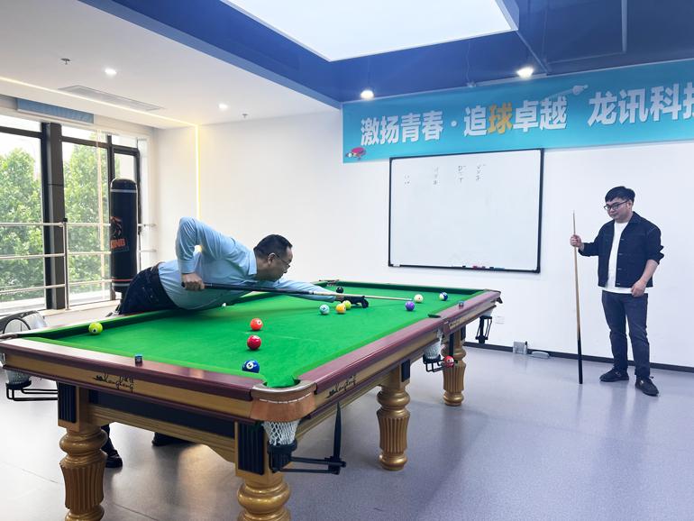 在臺(tái)球比賽中,共有28名選手參與競(jìng)技。比賽進(jìn)行的十分激烈,選手們集中精力,冷靜應(yīng)對(duì),時(shí)不時(shí)連續(xù)精準(zhǔn)進(jìn)球,時(shí)不時(shí)為對(duì)方制造障礙,多次出現(xiàn)了雙方爭(zhēng)奪黑八進(jìn)球一桿定勝負(fù)扣人心弦的場(chǎng)面。經(jīng)過(guò)層層淘汰、激烈角逐,最終,龍訊科技總經(jīng)理賀良震憑借出色的技術(shù)和穩(wěn)定的發(fā)揮,奪得了臺(tái)球比賽的冠軍,營(yíng)銷(xiāo)三部王青樹(shù)、Java開(kāi)發(fā)部張超分別榮獲亞軍、季軍。