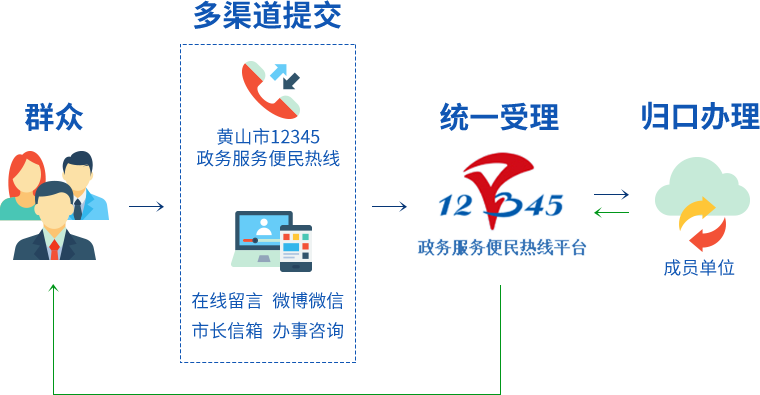 建立“多渠道提交、統(tǒng)一受理、歸口辦理、統(tǒng)一反饋”工作機(jī)制,實現(xiàn)群眾咨詢、建議、投訴等問題輕松“指尖辦”。