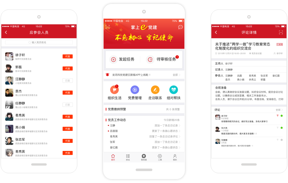 龍訊積極響應國家號召,深入解讀《規(guī)劃》要義,理解最新政策精髓,全新升級發(fā)布“智慧黨建云平臺”,運用最新互聯(lián)網(wǎng)和信息化技術(shù),創(chuàng)新完善“智慧黨建”管理工作系統(tǒng),助力全國各級黨組織有效加強黨務管理、提升服務群眾水平、強化大數(shù)據(jù)分析能力,擴大了黨在互聯(lián)網(wǎng)應用領域的數(shù)字化影響力。同時,該平臺已經(jīng)成功服務于全國眾多黨政機關(guān)和企事業(yè)單位,成為廣大黨員和黨群工作者了解黨群信息、交流黨群建設經(jīng)驗、研討學習黨群建設理論的重要載體,以及群眾參與黨的建設、密切黨群關(guān)系的重要途徑。